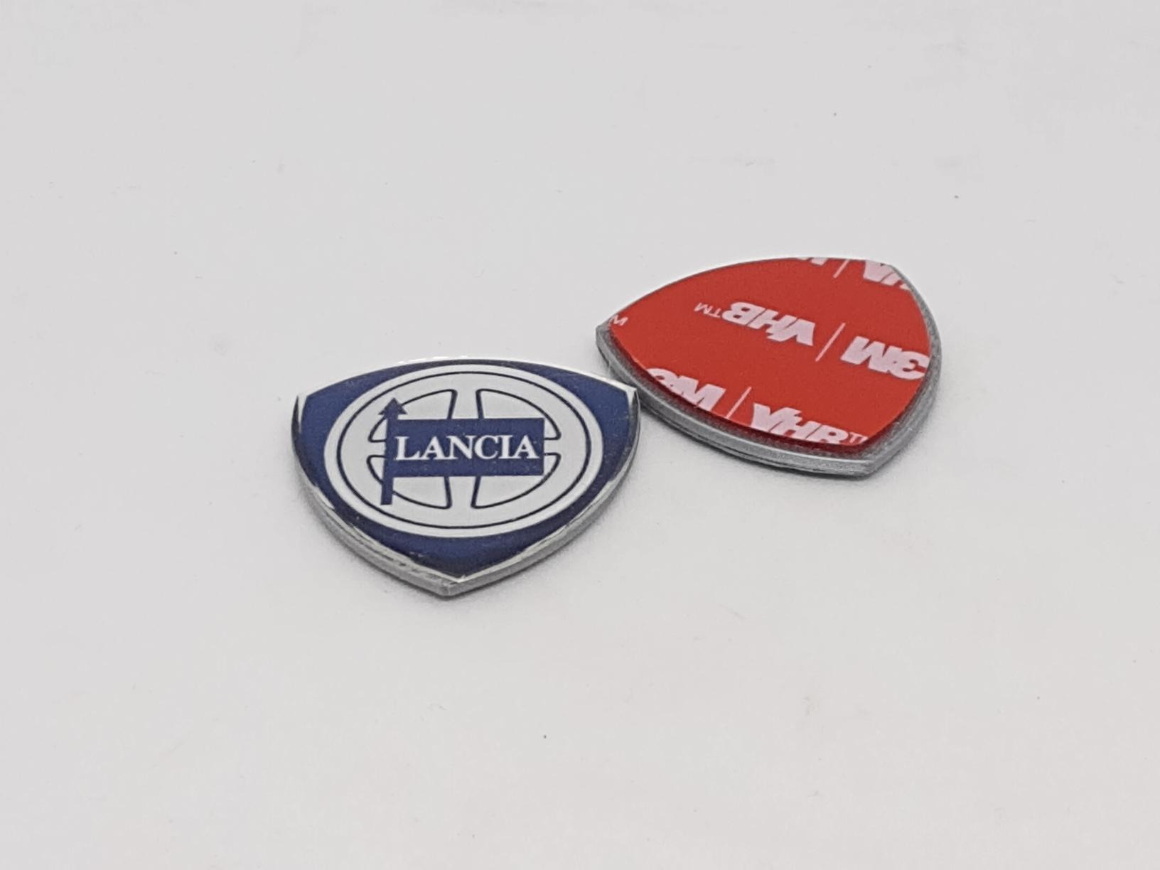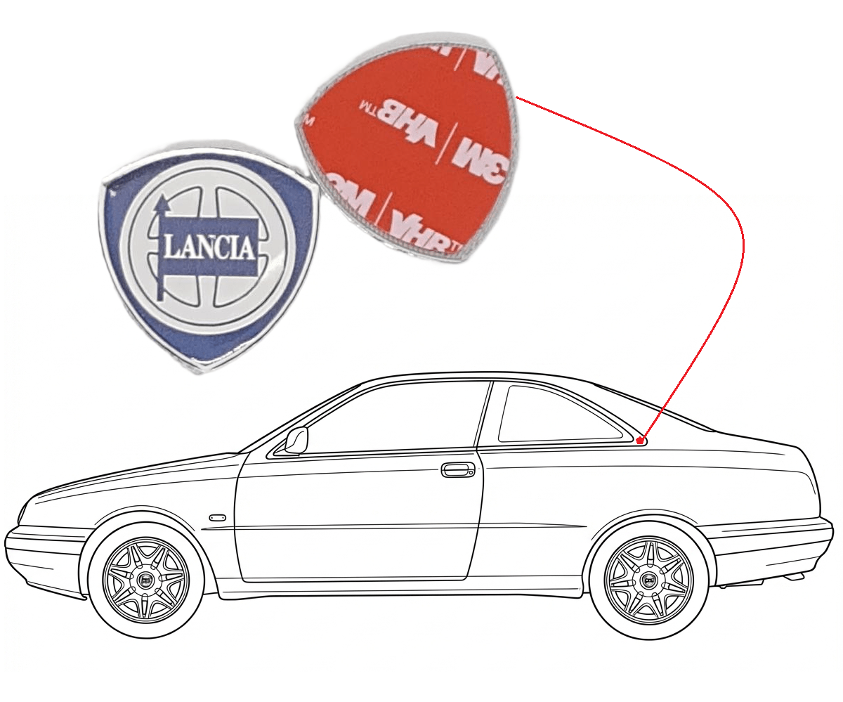 In-house developed replacement for the logo on the C-pillar for Lancia Kappa Coupe. imitation part. OEM Lancia 7765022