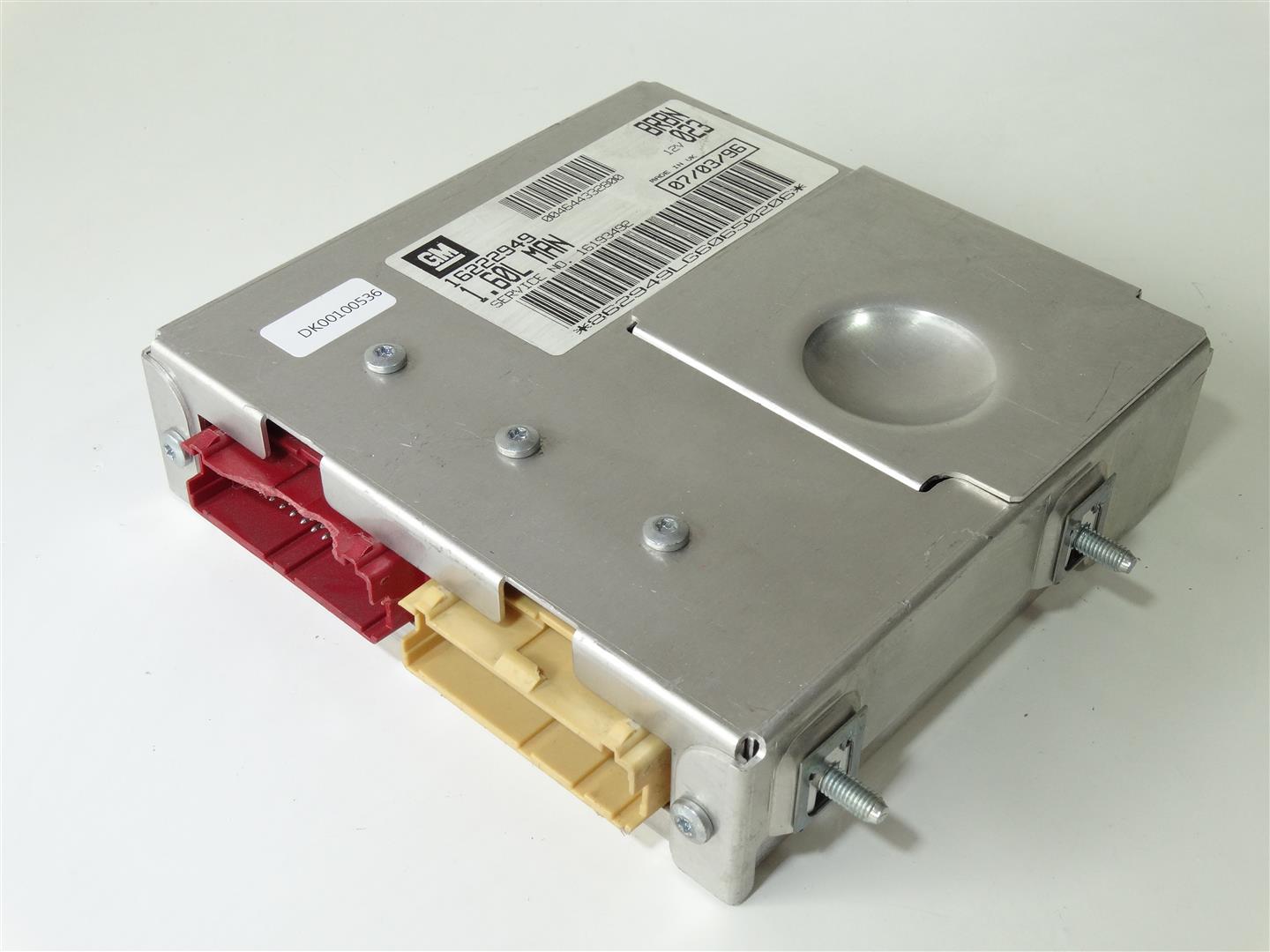 Centralina per iniezione di controllo e gestione motore per alfa Romeo 145 e 146 con motore 1.6 boxer. Da una 145 costruita nel 1996. Riguarda un’unità originale prodotta da GM. L’unità contiene una connessione a spina rossa e bianca.