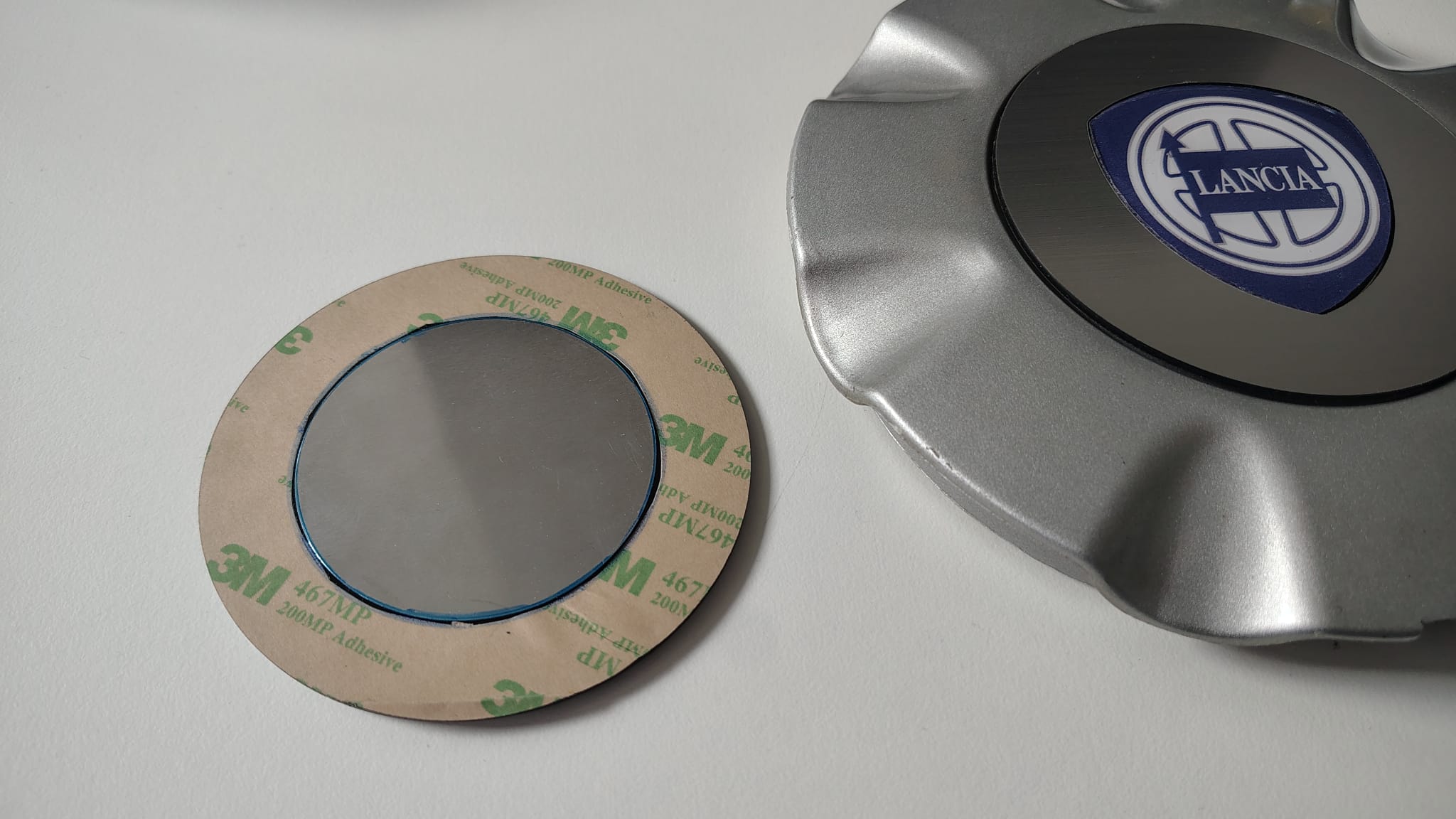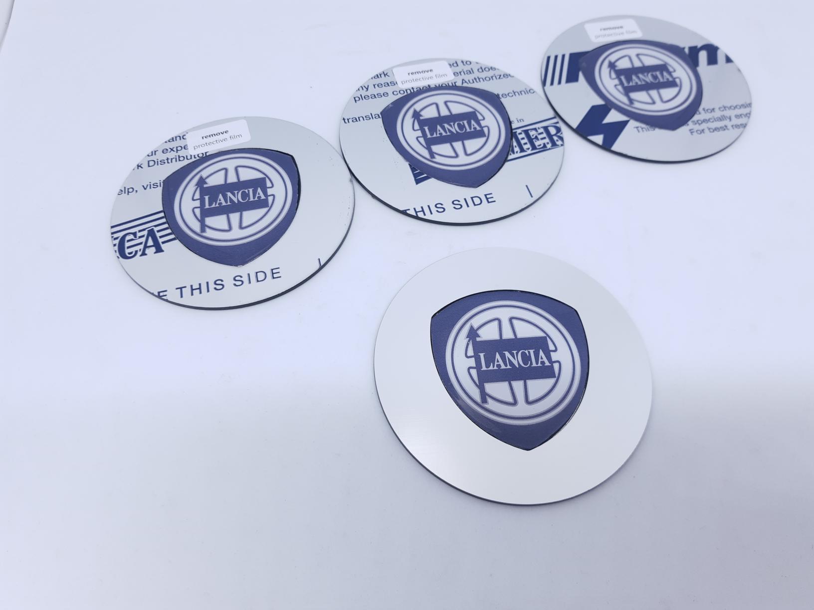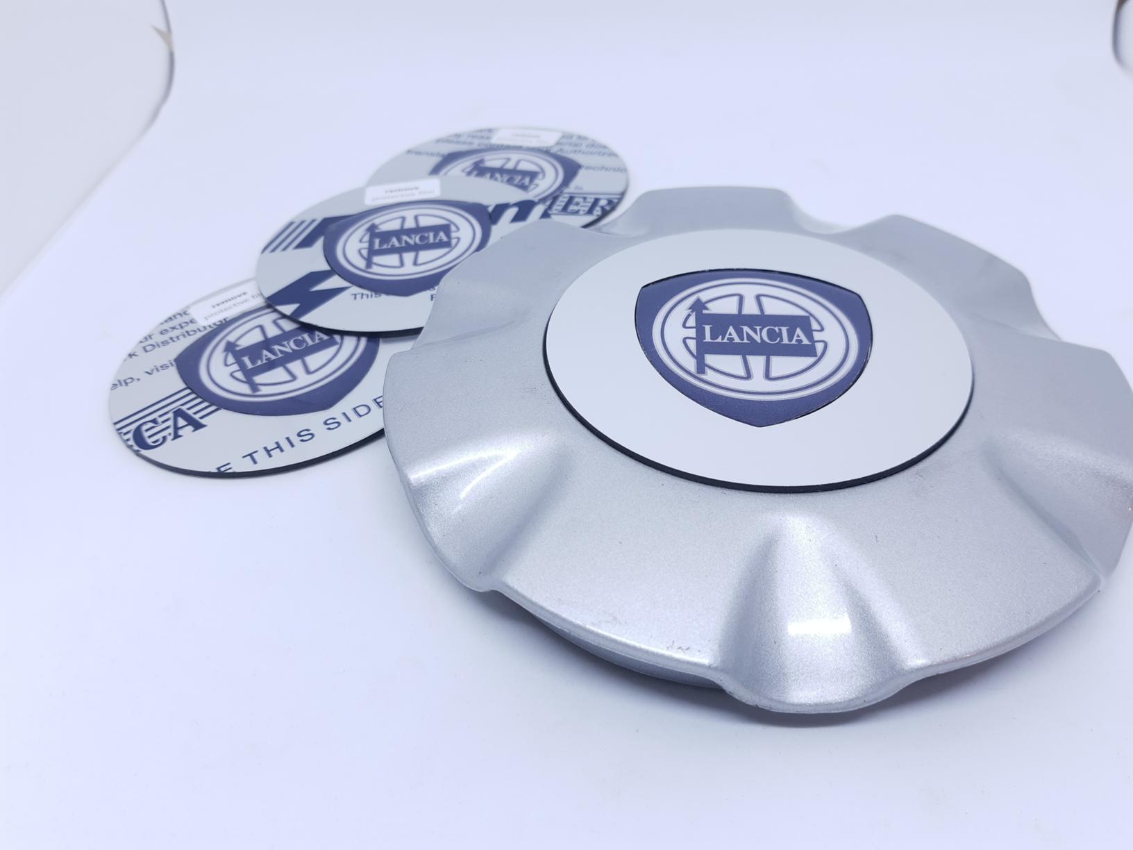 Set van 4 reparatielogo’s en voor het logo op de naafdeksels van de Lancia Kappa Coupe. De kenners weten dat deze naafdeksels onmogelijk nieuw te verkijgen zijn, en na een 20 jaar gebruik vaak hun beste tijd hebben gehad. Door aan de achterzijde van de naafdeksel de twee pinnetjes waarmee het chromen inzetdeel met daarin ook het Lancia logo uit het ABS kunststof kapje te duwen ontstaat een ruimte waarin dit vervagende logo past. Het vervangende deel is zilver en heeft geen chroomlaag en ook geen bolling, het is een vlakke plaat en geeft dus een andere uitstraling dan het origineel. De plaat geeft een duidelijk zichtbare opstaande rand bij de overgang met het deksel, zie de foto’s. Dit effect is wellicht wat te verminderen door de deksel wat af te schuren. Omdat het een handgemaakt alternatief is kan het voorkomen dat er lijmresten en andere individuele afwijkingen aan de items zichtbaar is. Dit is het best mogelijk alternatief dat we op dit moment kunnen leveren. Dit vervangende logo dient direct op de deksel gelijmd te worden. Zo ontstaat eem mooi eindresultaat dat jaren mee zal gaan! Hiermee vervang je zowel het verchroomde deel als het logo. Een prima oplossing om de getergde kapjes een tweede leven te geven. Het OEM kapje gaat door het leven onder het OEM nummer 46473237 Voor alle duidelijkheid het gaat hier om verkoop van 4 stuks reparatielogo’s zoals afgebeeld, niet om de complete dekseltjes corresponderend met OE nummer! Direct uit eigen Nederlandse voorraad leverbaar! We hebben een artikel geschreven over de verschillende mogelijke problemen met de Kappa coupe naafdeksels waar ook de verschillende oplossingen overzichtelijk onder elkaar staan. je treft het artikel hier: http://www.delenkorf.nl/lancia-kappa-naafdeksel-kap-problemen-en-oplossing.html