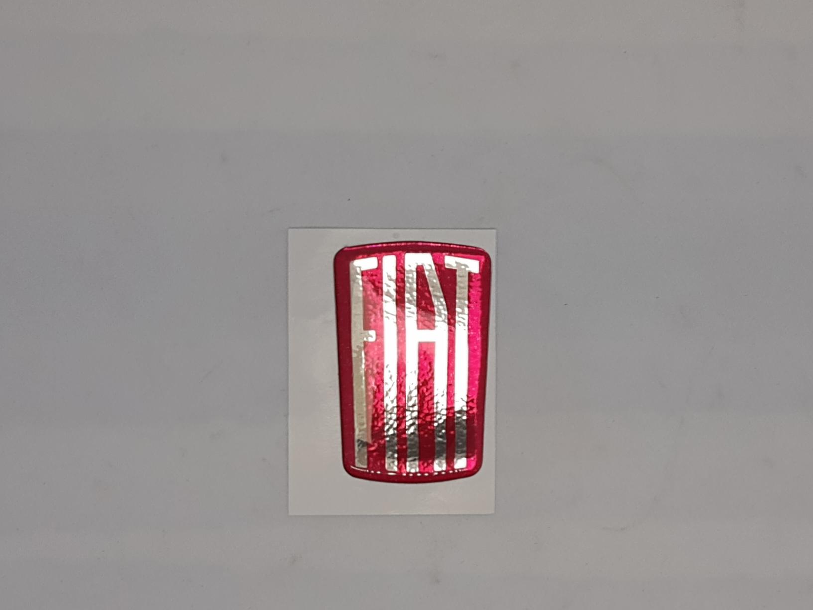 Nieuw imitatie Fiat Onderdeel. Rood fiat logo voor montage in het chromen lijstje voor Fiat classic 500 zowel op voorzijde als achterzijde toepasbaar. Betreft een reproductie in gel doming met silicone laag. De fiat letters zijn in chroom effect en het rood is in de lichtere variant (niet bordeaux rood maar bloedrood). Uiterste afmetingen ongeveer 59 x 39 mm Goedkope oplossing om een vervallen logo (meestal begeeft de binnenzijde van het logo het en is het chromen lijsjte nog netjes) weer in oude glorie te herstellen zonder hem te hoeven demonteren.