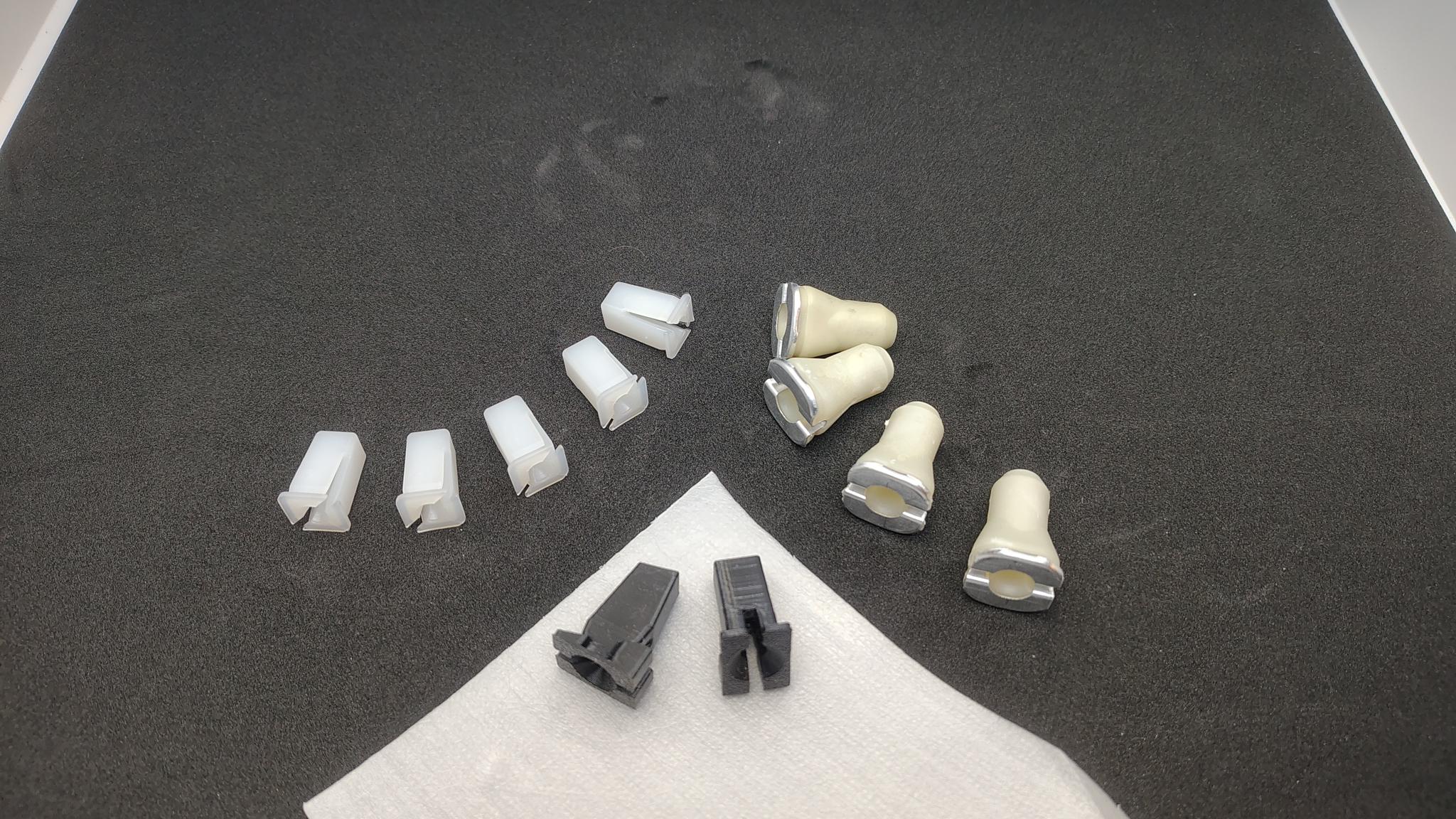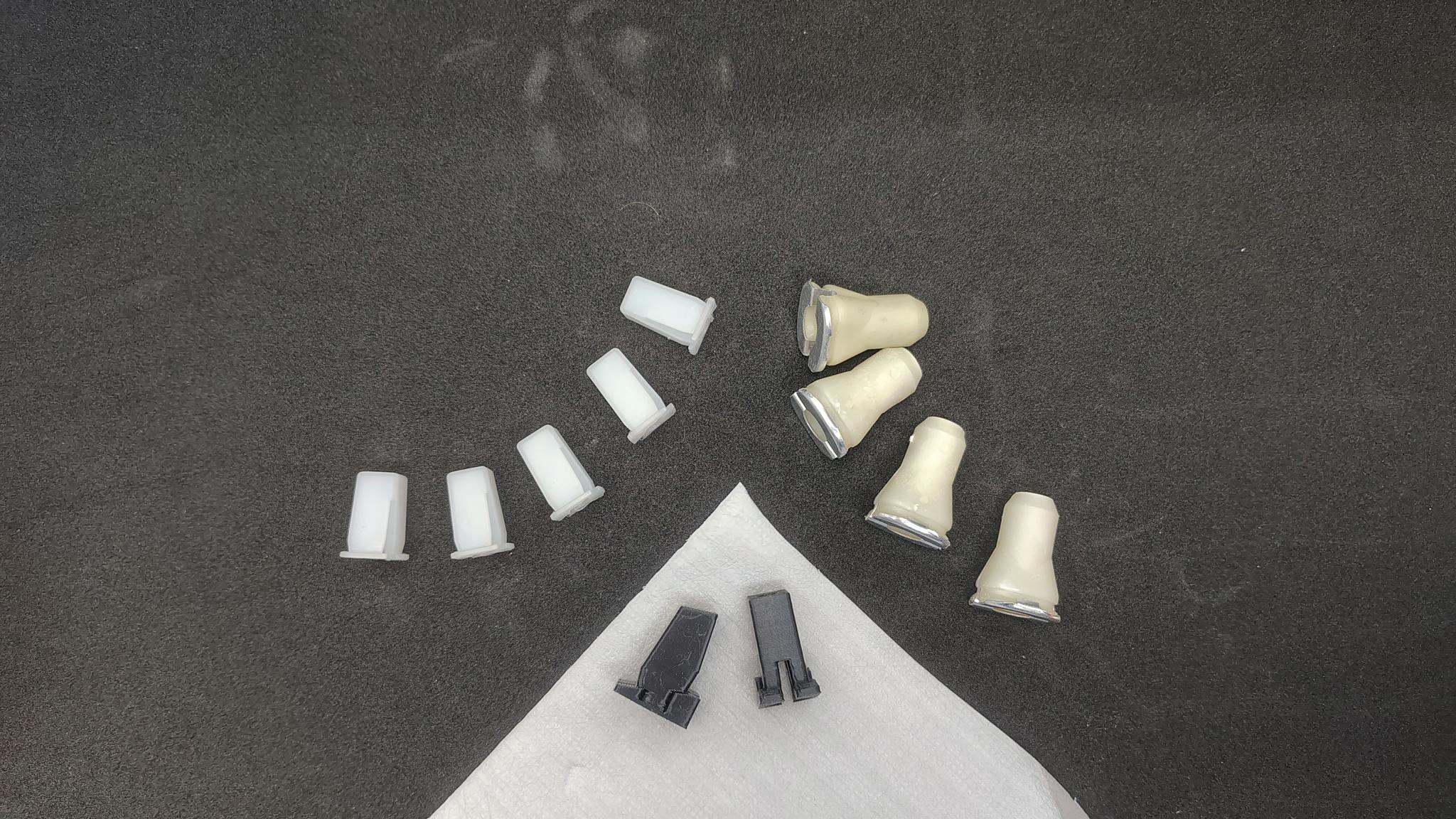 Set van 11 pluggen, alle benodigde carrosserie clips om een spatbord te monteren voor een Lancia Detla HF Integrale. De set bestaat uit: 5 x witte vierkante plug voor de onderste bevestigingspunten. 14222285 Dit betreft een reproductie gegoten plug, exact conform de originele kwaliteit. 4 x creme kleurige ovale plug voor de bovenste 4 bevestigingspunten van het spatbord. 5979901 Dit betreft een reproductie gegoten plug, exact conform de originele kwaliteit compleet met aluminium steunplaatje 2 x zwarte rechthoekige plug met wigvorm voor de montage aan de A-stijl. 82426456 Dit betreft een reproductie 3d print in hoogwaardig TPE. Het best verkrijgbare alternatief voor deze plug die wereldwijd uit productie is. Onderdeelnummers 4, 6 en 8 op de technische tekening uit EPER tekening nummer CA2C410FE51F6666958E0A50D0CF065F mbt de toepassing op de Lancia Delta Integrale. Deze set is voldoende voor montage van 1 spatbord dus een linker of rechter spatbord. OEM Lancia 82426456  5979901 14222285 ter referentie