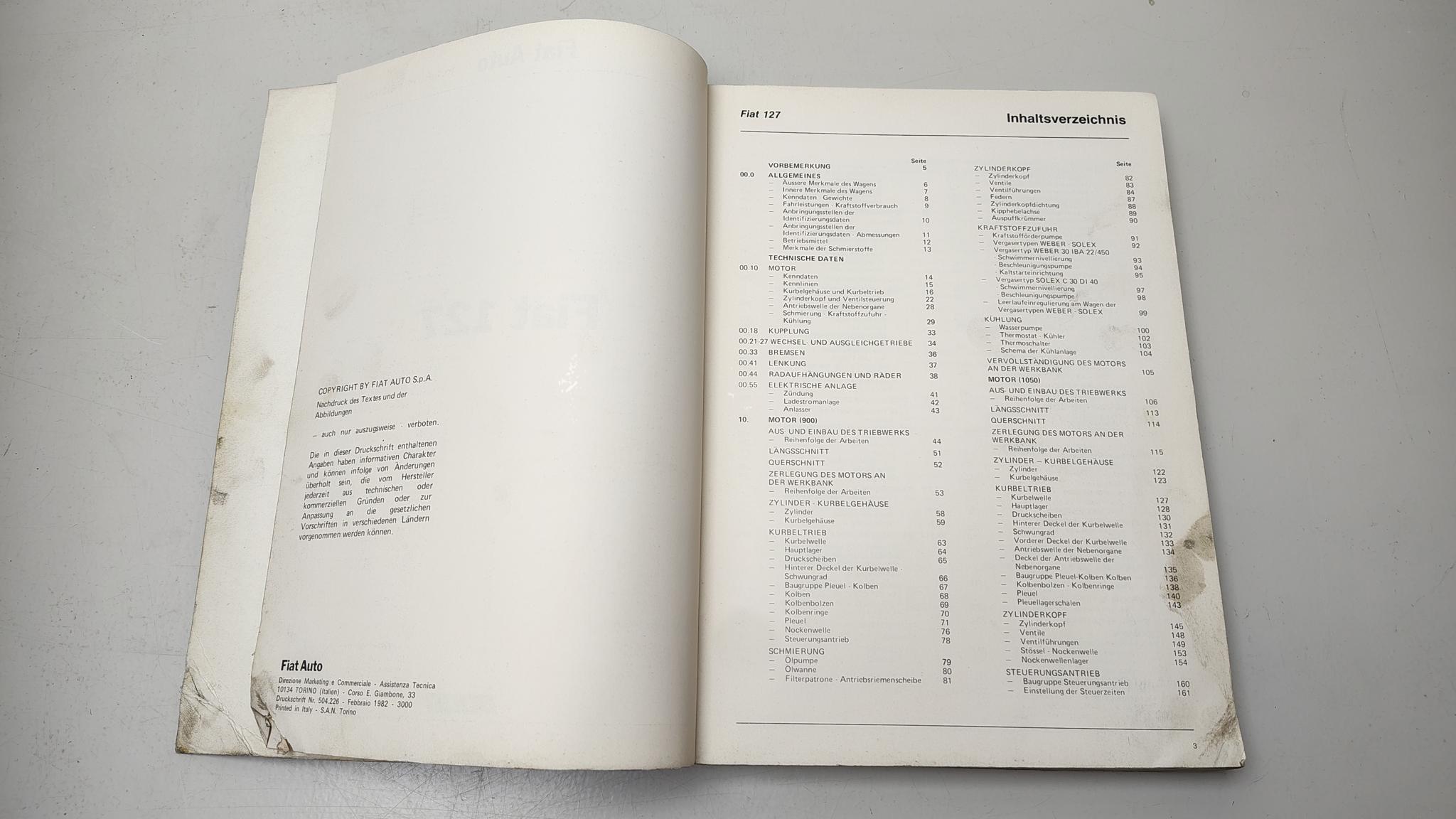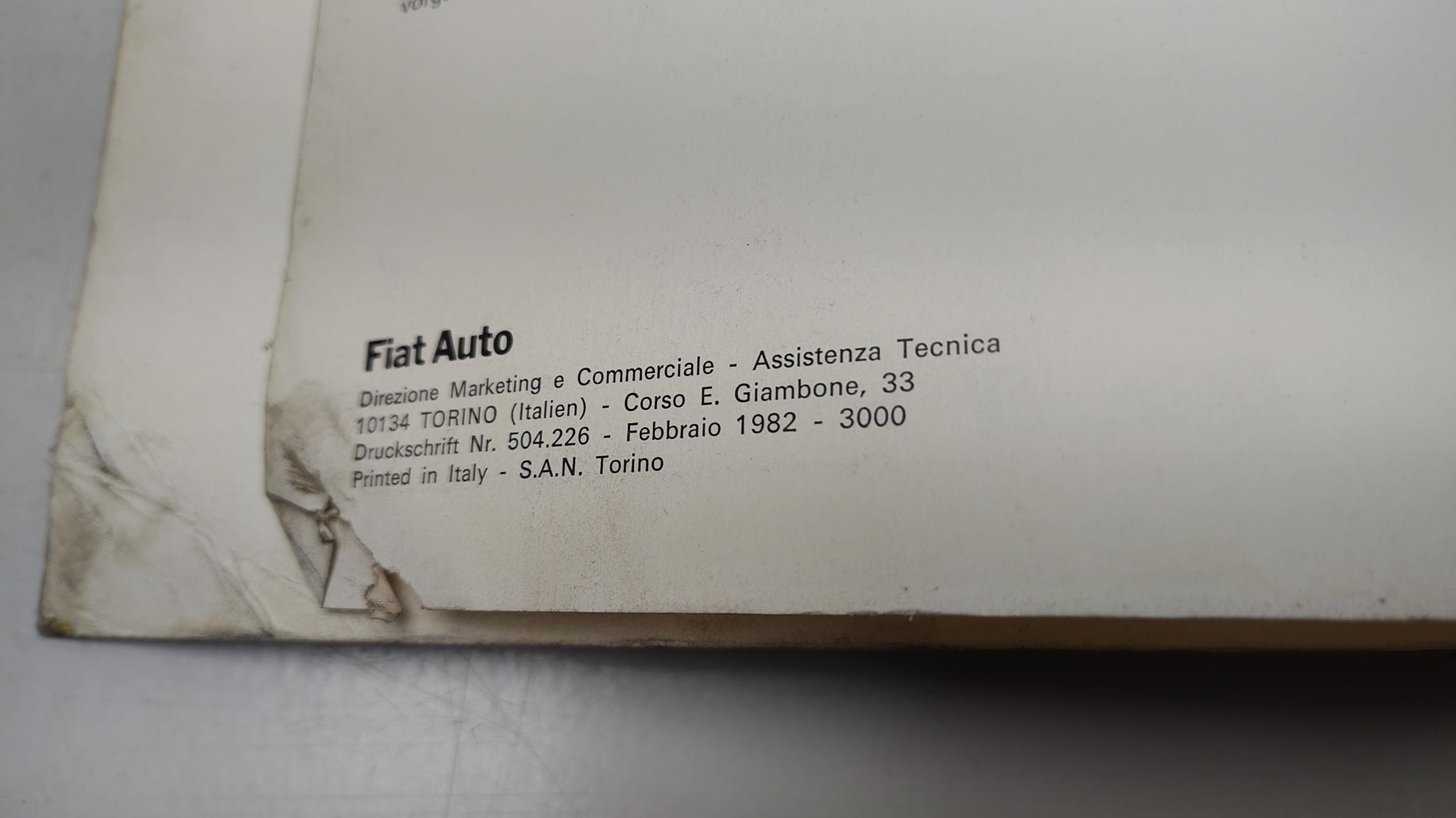 Werkplaatshandboek Fiat 127 Duitstalig Uitgave van februari 1982. Druckschriftnummer 504.226 oplage 3000 stuks.